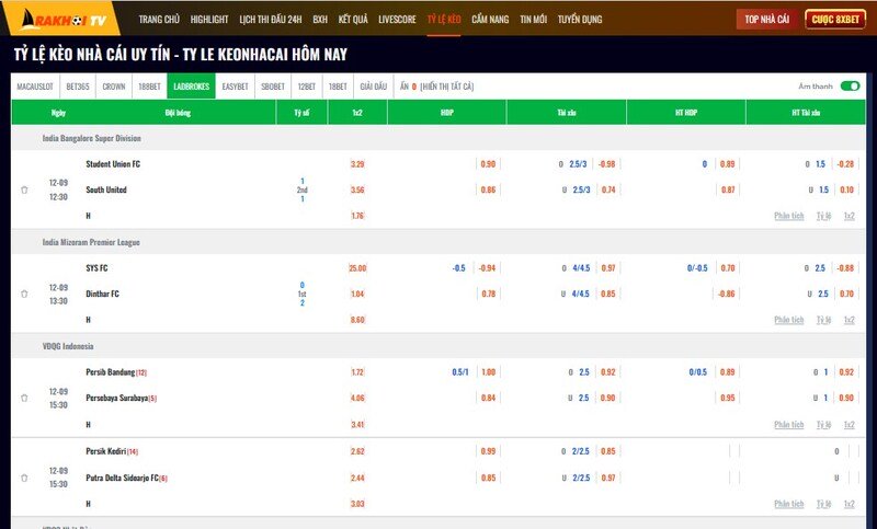 Bảng ti le keo biến động liên tục trên Rakhoi TV